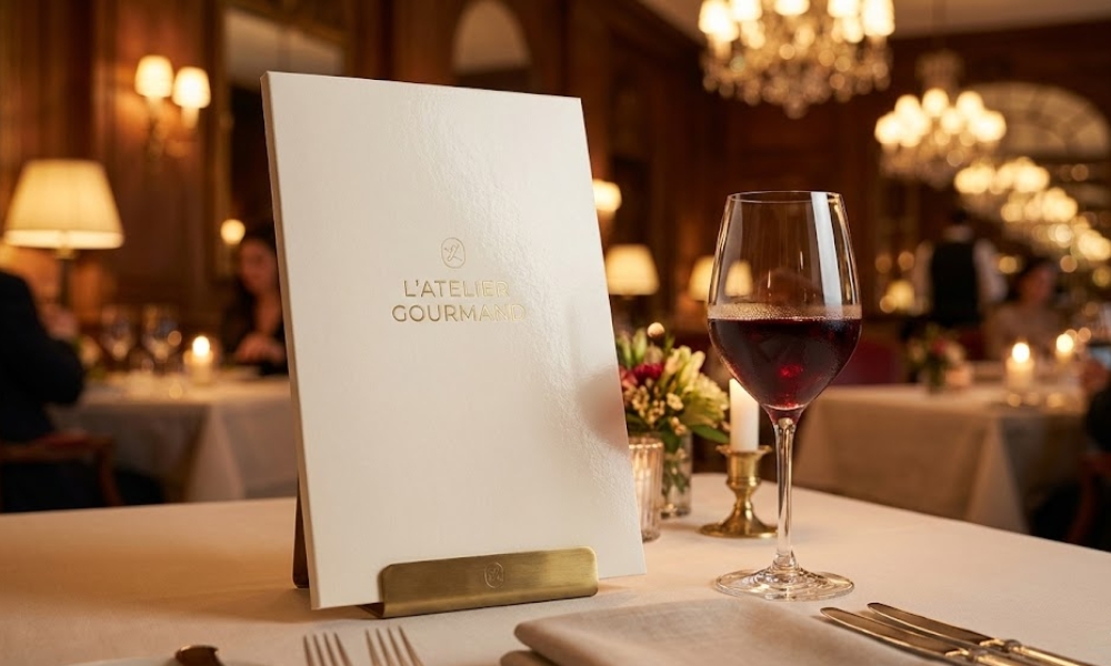 • U restoranima, gde je važan balans između izgleda i otpornosti, praktičan izbor je deblji karton sa zaštitnim premazom ili sintetički papir. Ovi materijali podnose svakodnevnu upotrebu, a istovremeno omogućavaju čistu štampu boja i detalja.